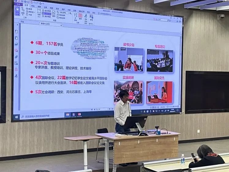 随后,韩曙光老师围绕友爱与成长这一主题,全面呈现了信息资源管理学院的学生工作特色与成果。在信息资源管理学院学生工作团队的努力下,学院为学生成长提供了吴宝康大讲堂、数字记忆厚重人才培养计划、薪火杯学生课外学术科技作品竞赛、兰台读书会、WEB开发实验室、数字人才实验室等丰富平台资源,同时下设有党建促进会、分团委、本科学生会等学生组织,为学生工作能力的锻炼提供更多机会。整体介绍展示出了学院对学生的殷切关怀、精彩的实践之旅和开阔的学术视野,呈现出积极团结、守正创新的学院氛围。