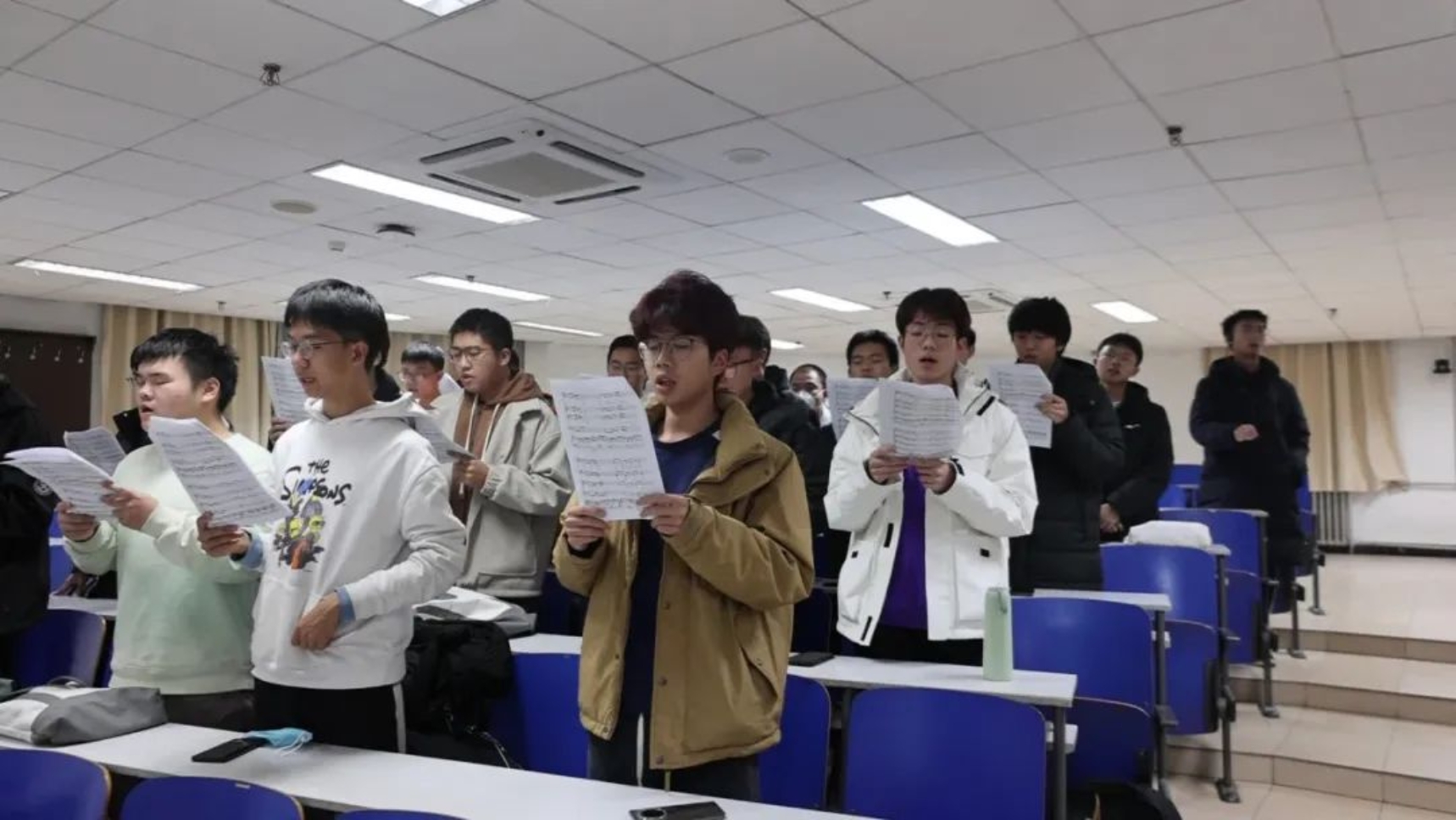 夜幕降临,“人大组歌”展演暨“一二·九”合唱音乐节书院代表队的队员们,聚集在一起,投身于合唱的排练。他们用歌声缅怀英勇,用旋律铭记历史。一首《英雄赞歌》,唱响烽火岁月中的坚毅信仰,唤起新时代青年的责任担当。