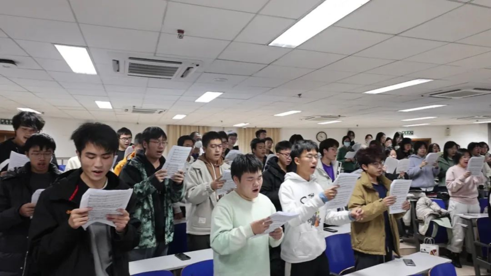 合唱训练已开展三周时间。每一个音符,每一个动作,都见证了同学们的辛勤付出和不懈努力,《英雄赞歌》的宏伟气势和不朽精神也在声音的调谐中逐渐展现。