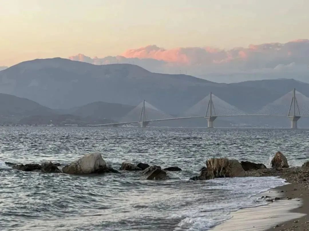荷马吟唱爱琴,总爱用“酒色的大海”与“当清晨的女儿、指尖粉红的黎明出现之时”,而当我来到帕特拉斯的海边,真好像走进了荷马的诗行。这里位于伯罗奔尼撒半岛的西北端,紧邻爱奥尼亚海和科林斯湾。酒店的海滩对面就是阿提卡半岛的岬角,北边便是安提里翁跨海大桥。傍晚的晚霞由橘黄慢慢醉成紫罗兰色,最后褪成浅粉、深蓝,渐渐将夜空交给漫天的繁星。坐在海边慢慢看天幕沉醉、海浪翻涌,前方的金星尤其璀璨,我的心里也格外宁静。
